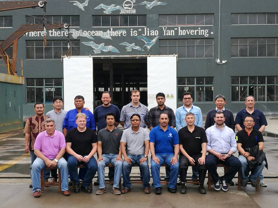 17名船舶服务精英人员来到华体会平台,对厂家设备的新设计,新产品进行深层次的学习和服务训练,成为佼燕救生设备的优秀服务商,为佼燕的客户提供更优质,更专业,更及时的服务.